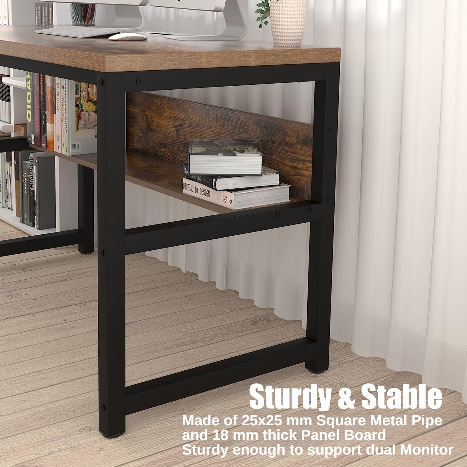 120 cm Study Desk with Under-Desk Shelf – Industrial Computer Table with Storage, Rustic Wood & Black Metal Frame, Writing Desk for Home Office, Study, or Gaming Setup