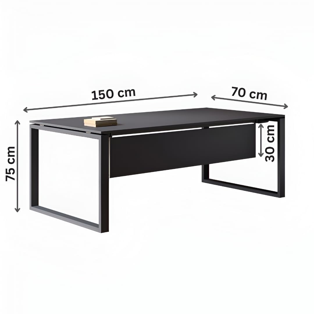 150×70 cm Executive Desk for Office | Matte Grey Engineered Wood Table with 30 cm Modesty Panel | Heavy Duty Metal Frame | Workstation Table for Home & Office