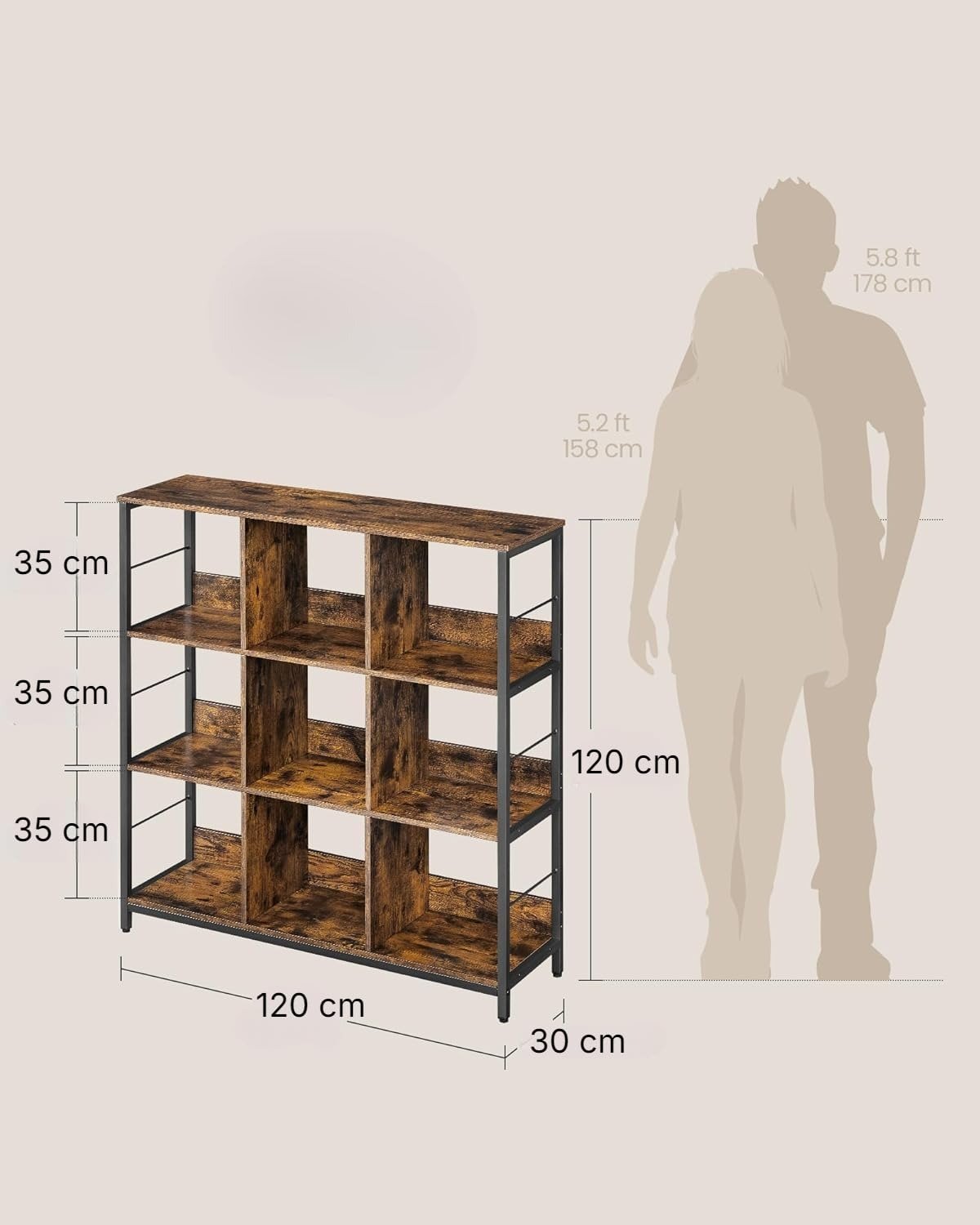 Be the first to review “3 Tier Cubical Bookcase, Cube Shelf, Console Table, Bookshelf with 9 Storage Cubes, for Office, Living Room, Bedroom, Industrial Design, 120x30x120 cm, Rustic Brown”
