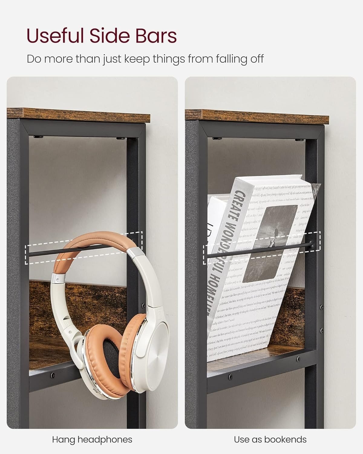 • Special features: Nothing will fall off from this shelf! With edges on the back, bars on the sides, your items are safe! Put valuable vases and collectible statuettes on it without a worry.