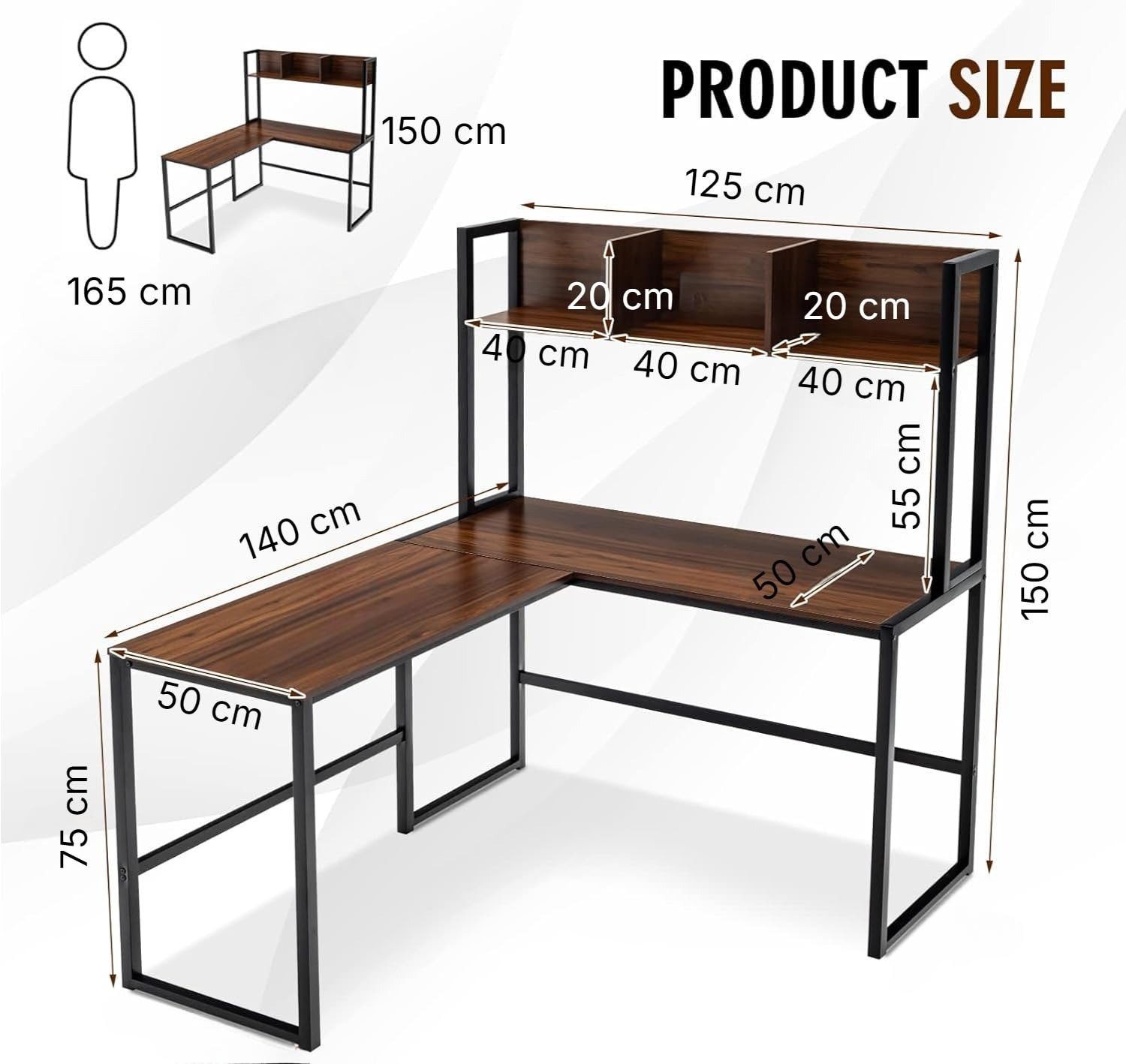 Be the first to review “Reversible L-Shaped Desk with Hutch, Space Saving Corner Computer Desk with Storage Shelves, Home Office Study Writing Desk Computer Workstation with Storage Bookshelf_Walnut Brown”