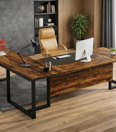 L-Shaped Executive/Director Office Table, Executive Desk for Home & Office, Executive Desk for Office, Laptop Table, Study Table, Modern Workstation – Brown – DIY – 180x70x75 CM